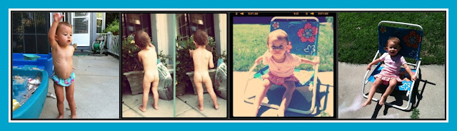 The rest of Sunday evening that we spent outside, Roweyn played in her sand box on the deck and realized her swim diaper was wet and not comfortable...so off it went with the help of mommy! Which then resulted in her doing some naked gardening! So cute!
